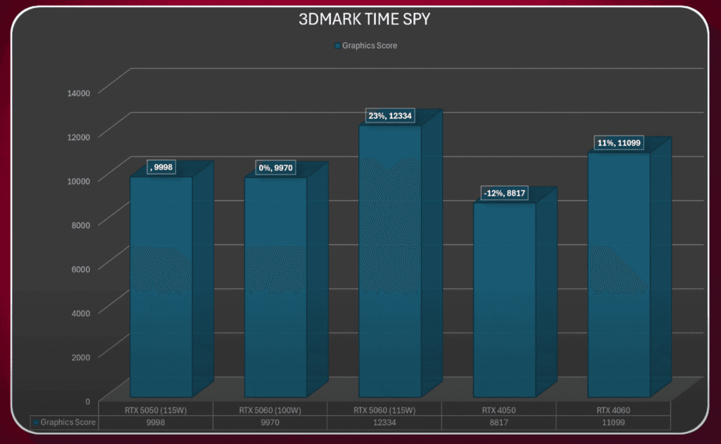 For graphics, benchmarks like 3DMark Time Spy, Geekbench 6 GPU, and VRMark all showed impressive results. The RTX 5050 may be positioned below the 40-series cards, but side-by-side comparisons make it clear where it stands in the new 50-series lineup. For most modern titles, you’ll get smooth performance without major issues.