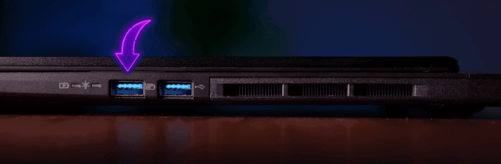 On the right side, the Acer Predator Helio Neo 16s offers a USB 3.2 Gen 2 Type-A port along with a USB 3.2 Gen 1 Type-A port that supports power-off charging. This means you can charge your devices even when the laptop is switched off. LED indicators are also placed here.