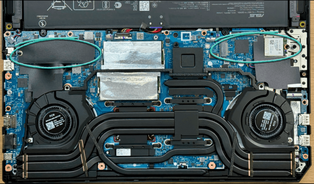 Both models include 16 GB of RAM, but the Katana uses dual-channel sticks. If you upgrade to 32 GB later, both modules need to be replaced. The TUF F16 uses a single-channel stick, making future upgrades easier.