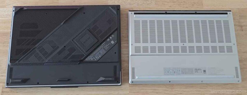 Lighting also highlights their differences. The Zephyrus keeps things subtle with a single LED strip at the back, while the Strix includes a bold RGB strip at the front, making it much more eye-catching. When it comes to portability, the Zephyrus is significantly easier to carry. The Strix is heavier and thicker due to its larger cooling system, which makes it less convenient for daily travel.