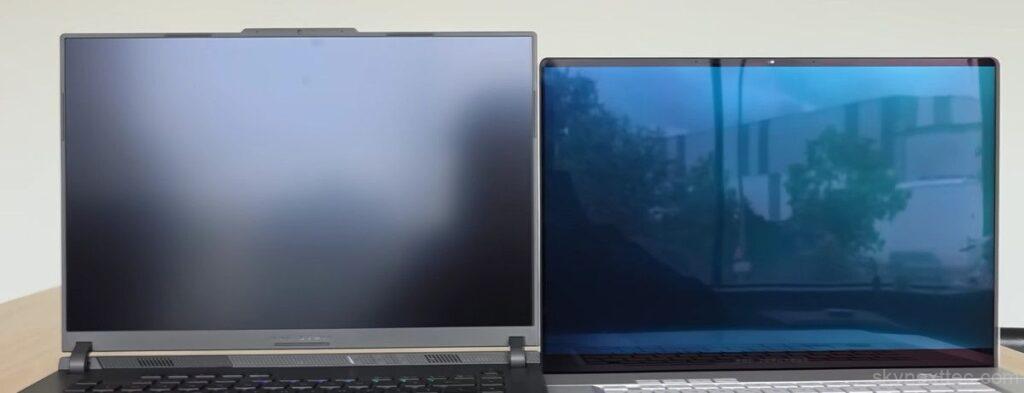 Brightness levels are similar at around 500 nits, though the Zephyrus appears brighter due to its higher contrast. The Strix’s matte display handles reflections better, while the Zephyrus uses an anti-reflective coating on its glossy panel.