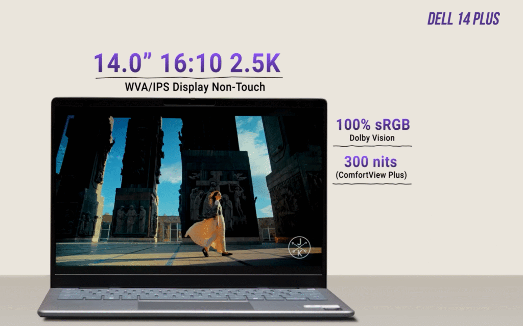 The 2-in-1 model uses a 14-inch FHD touchscreen, while the standard Dell 14 Plus steps up to a sharper 2.5K QHD panel. Both offer 300 nits of brightness and support Dolby Vision, which improves contrast and overall video quality.