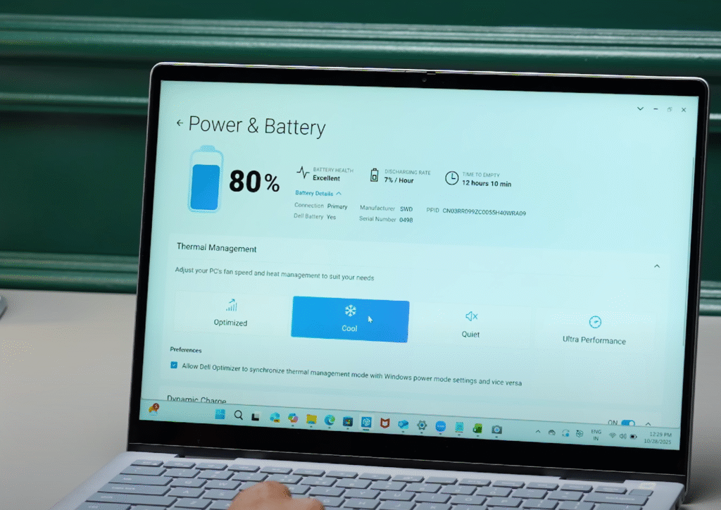 You can monitor your battery’s health through Dell’s built-in tools, which is helpful for long-term use. Dell Optimizer claims up to 22 hours of battery life, and while that number is ideal-case, you can still expect a full workday in mixed usage. It also supports fast charging through Express Charge, which can take the battery to about 80% in roughly an hour.