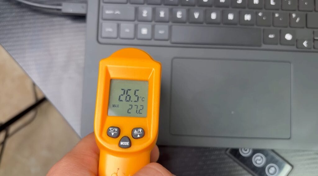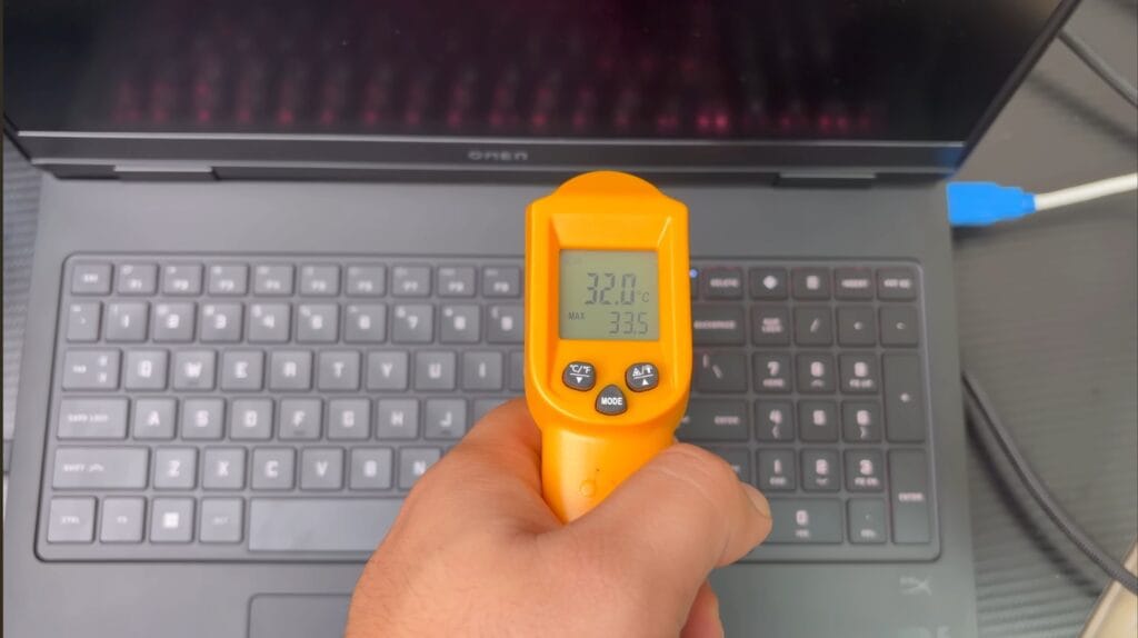 - Keyboard: 33–34°C