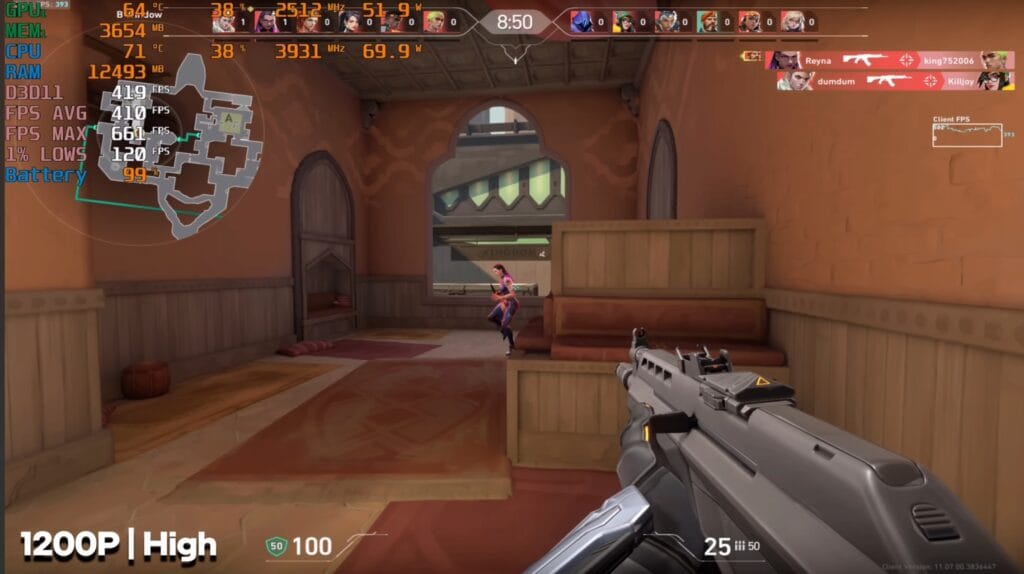 Valorant (1200P, High Settings):