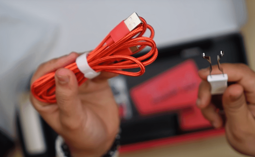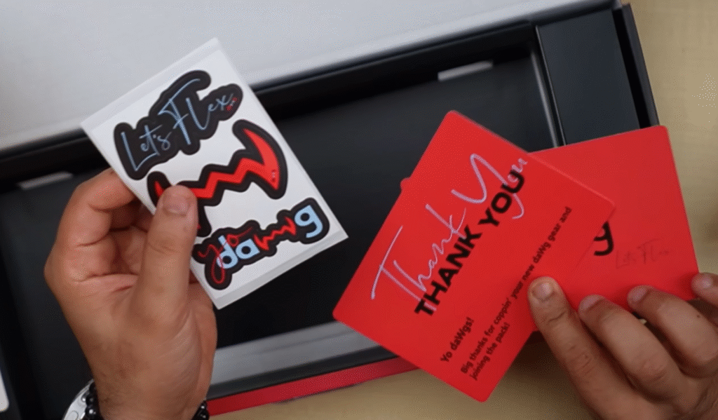 Opening the box reveals the Dowg’s H718 keyboard, four extra switches, a user manual, a QR code, a sticker, a keycap puller, a switch puller, and a braided Type-A to C cable. The keyboard comes with blue switches and a black-and-red theme, including the Dog W logo, and the h718 keyboard weighs around 800-900 grams.