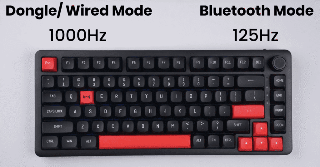 - Bluetooth mode has a 125Hz polling rate, slightly lower than wired/dongle mode for competitive gaming.