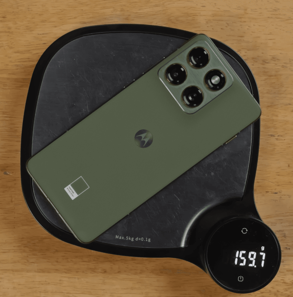 The Motorola Edge 70 is incredibly light for how premium it feels. It weighs just under 160 grams, around 159.7g, which is impressive for a phone with a metal frame.