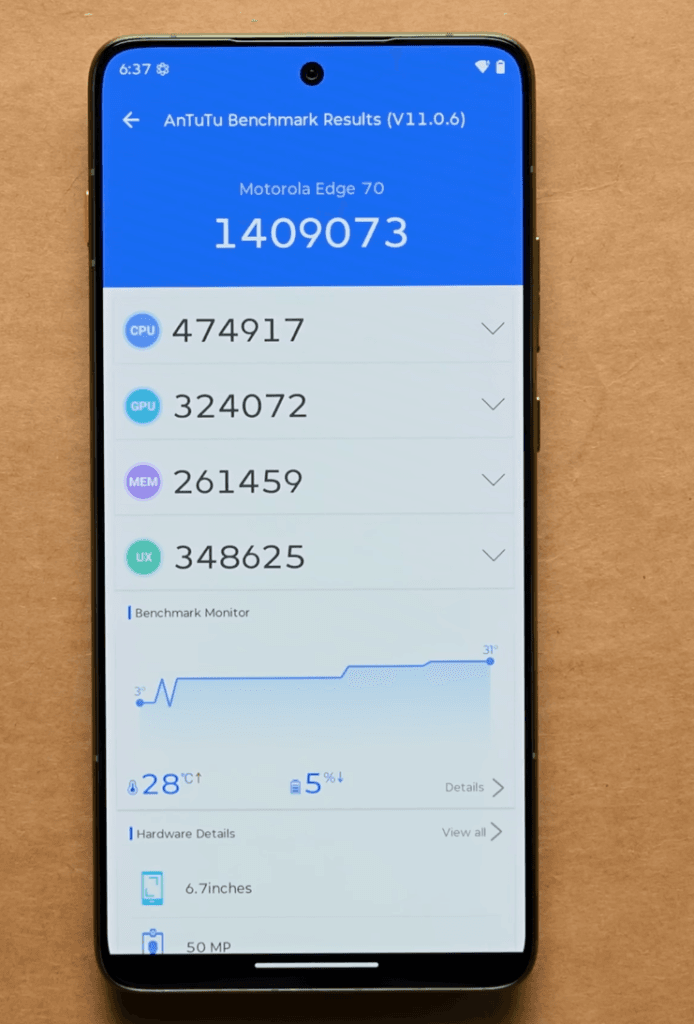 Overall, the Edge 70 delivers balanced performance, stable gaming, and excellent battery life, making it a strong contender in the mid-range smartphone segment.