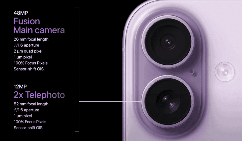 the next change is regarding the camera. The camera you get in the back of the iPhone 17 is a 48 Megapixel fusion camera. The secondary camera is a 12 megapixel telephoto lens at 2X. And in the front, you get an 18 megapixel selfie. Yes, this is a big upgrade in selfies.