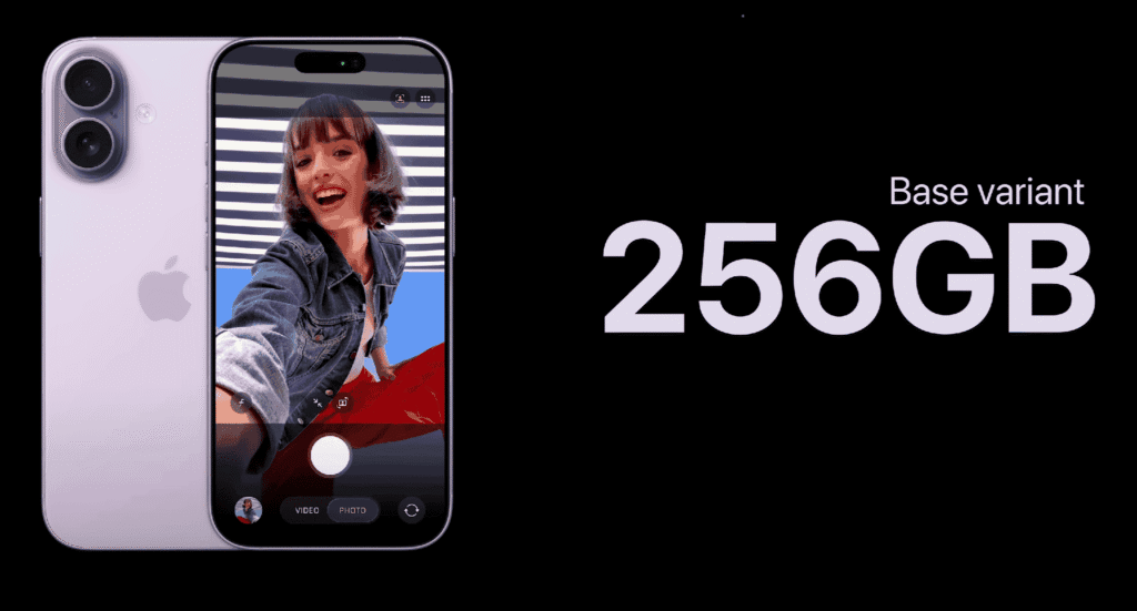 Now iPhone 17 starts directly from 256 GB. Which is a very good move in my opinion because 128GB was very little. Now starting from 256 GB base. Thumbs up for this. But yes, in this matter. Guys, they have also increased the price. The last time iPhone 16 came out, its starting price was $699. Now it has been increased to $799. But one second🤔, when the iPhone 16 256 GB variant was launched, its price was $899. Its 256 GB variant was $799. So you are getting an iPhone 17 for $99 cheaper😁😁.