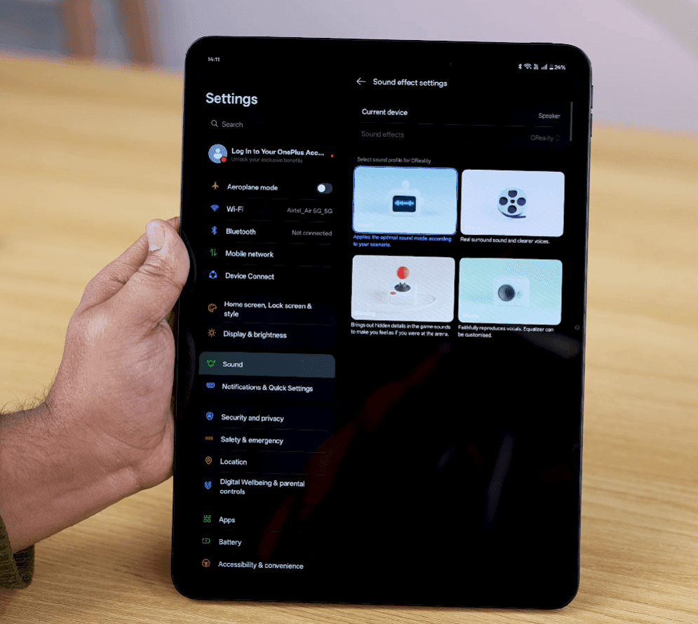 The tablet features quad speakers, and they’re loud and clear. Instead of Dolby Atmos, OnePlus uses OReality Audio, which allows some customisation of the sound profile.