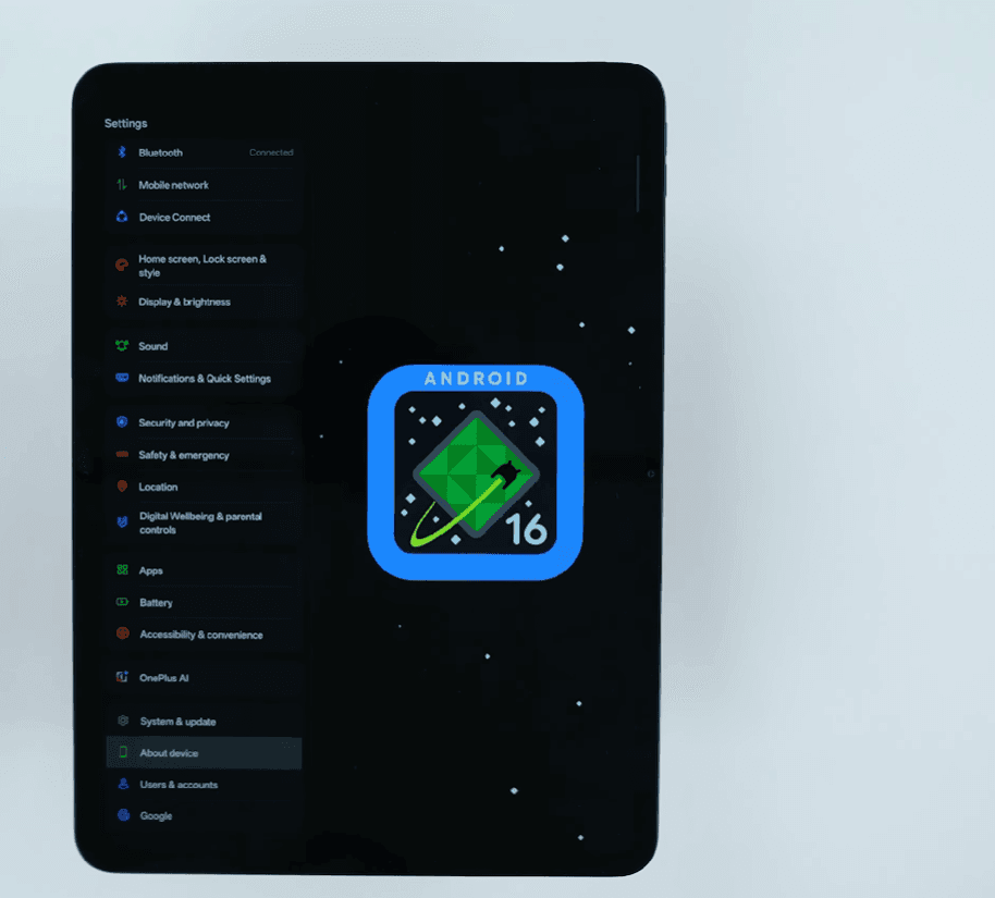 The OnePlus Pad Go 2 runs Android 16 out of the box with Oxygen-OS 16.