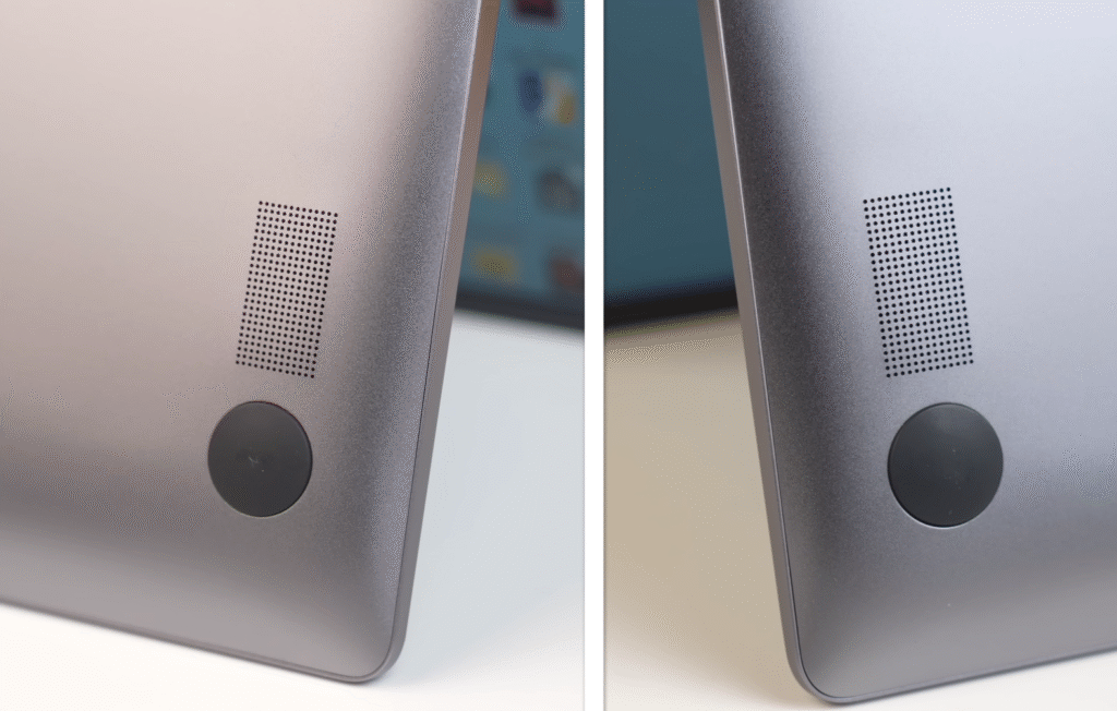The edges are smooth, and the bottom panel has air vents, rubber padding and dual 2-watt speakers with Dolby Atmos.