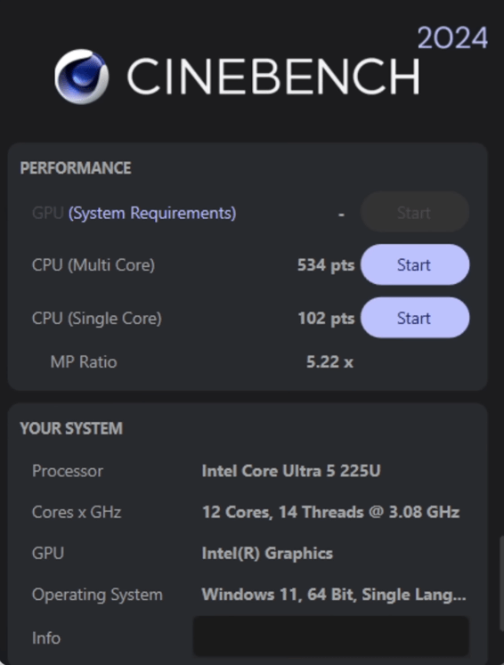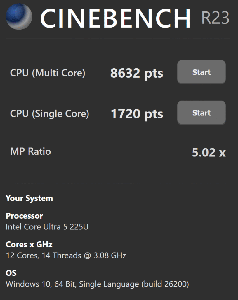 ProcessorIntel Core Ultra 5 125U (Series 2, Arrow Lake)
