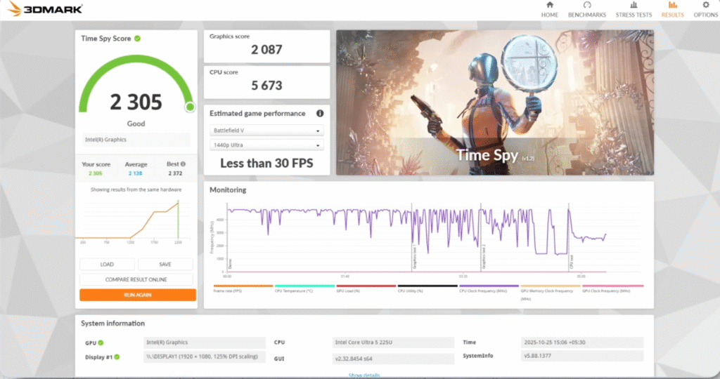 The Galaxy Book 5 AI isn’t a dedicated gaming laptop, but its Intel Core Ultra 5 125U processor delivers surprisingly solid performance for casual gaming. Here’s a breakdown of my testing across popular titles: