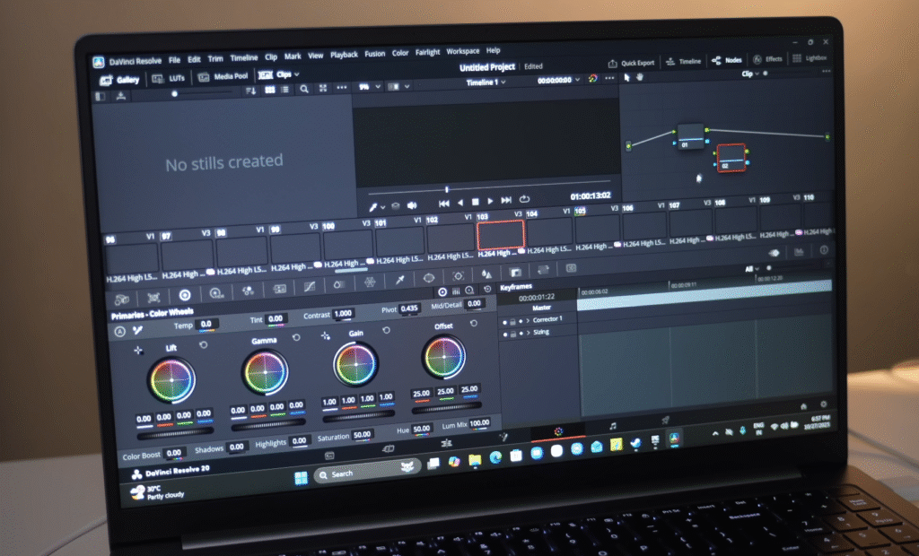 I tested the Galaxy Book 5 AI in DaVinci Resolve, and it handled Full HD video editing smoothly. Adding transitions, color corrections, and other basic edits worked without any lag, making it a solid choice for YouTube or Instagram-level content creation.