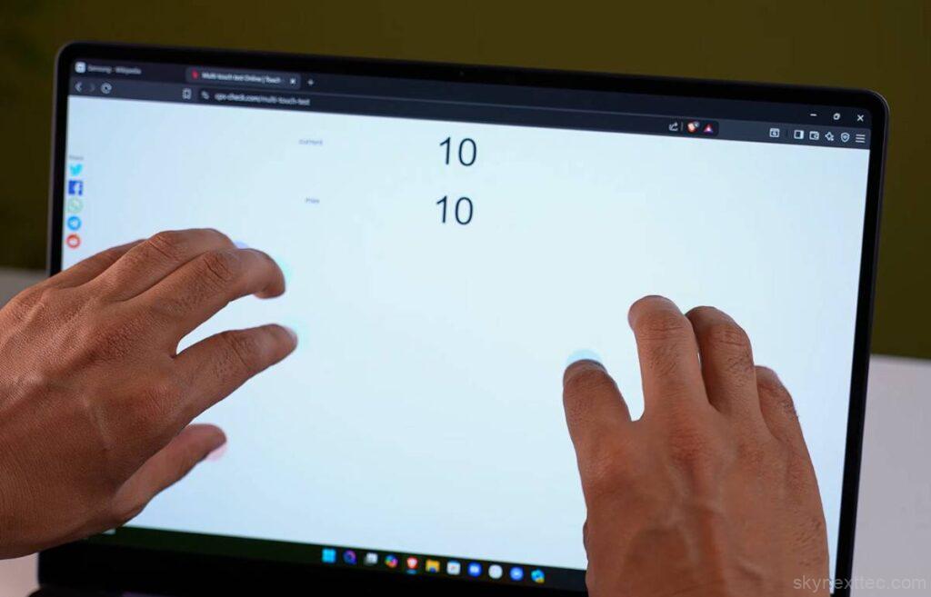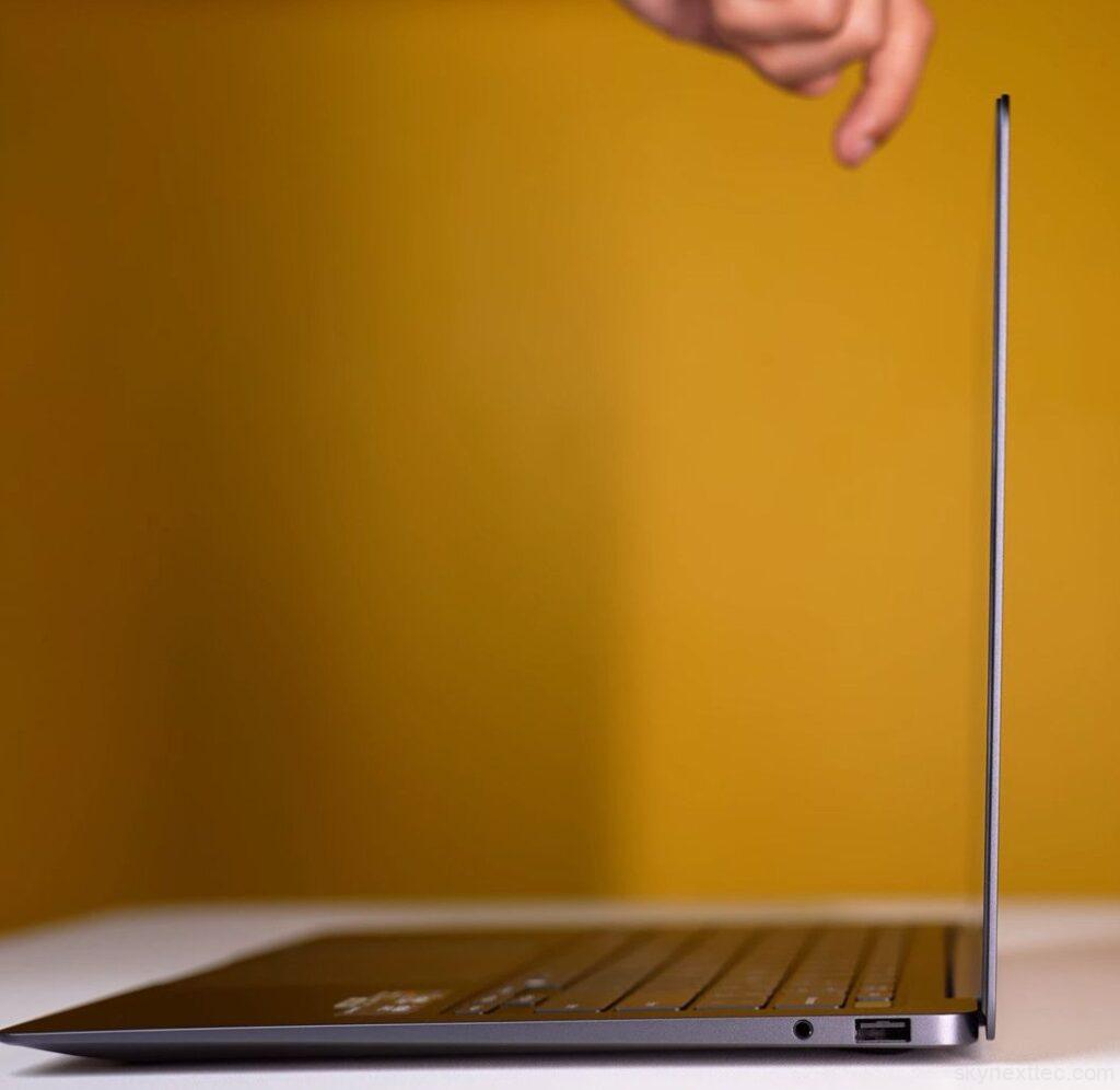 In our test (50% brightness, keyboard backlight off, Wi-Fi on, multitasking with music and apps running), it delivered around 10–12 hours of usage. That’s a strong result for a thin-and-light laptop.