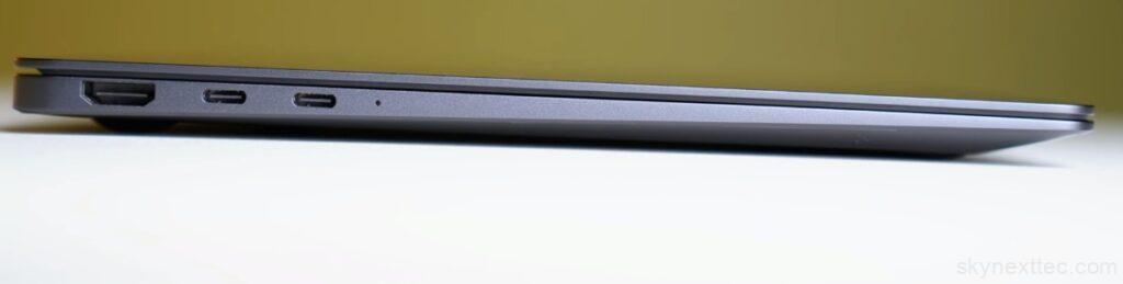 On the right side, you get a USB 3.2 Gen 1 Type-A port and a 3.5mm headphone/mic combo jack. On the left side, there’s a full-size HDMI 2.1 port, which supports up to 4K at 240Hz output. You also get 2× Thunderbolt 4 ports, which handle fast data transfer, 4K display output, and up to 65W charging.