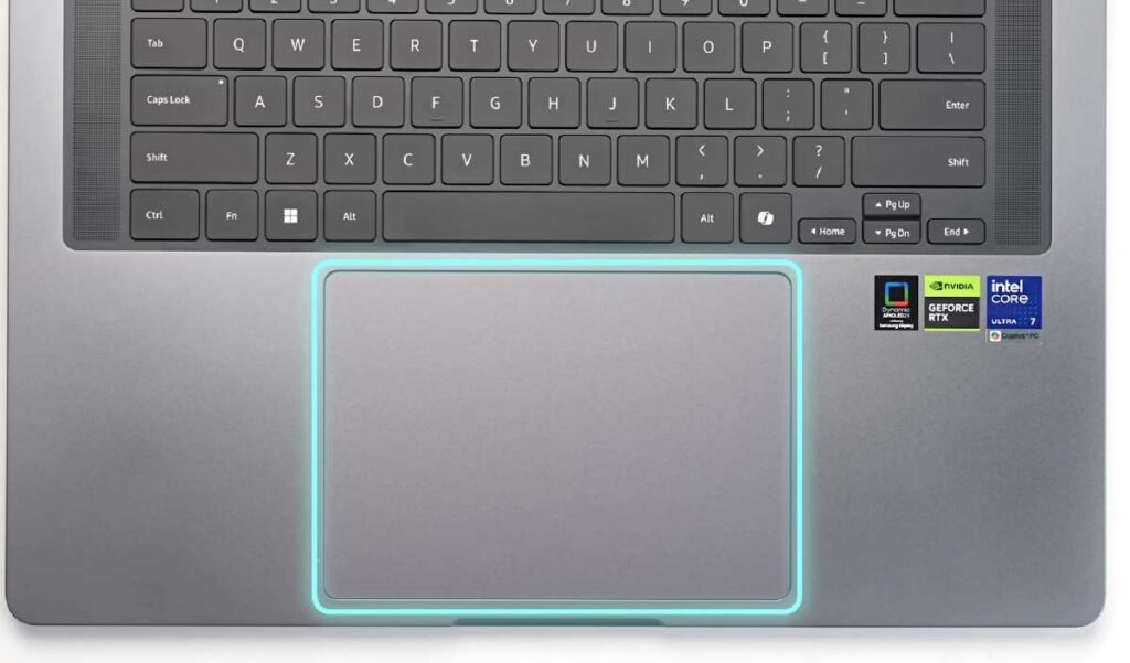 The track-pad is one of the largest you’ll find on a Windows laptop. It uses haptic feedback instead of a traditional click mechanism, which gives it a modern and premium feel. There’s also plenty of palm rest space, which improves ergonomics and reduces fatigue when typing or working for extended periods.