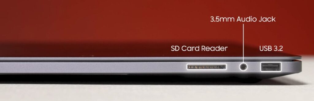 One of the best things about this laptop is that Samsung didn’t sacrifice ports for the sake of thinness. You get a well-rounded selection of ports, which is something many modern laptops miss.